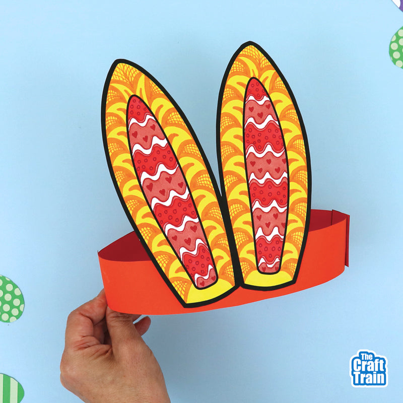 The plain bunny ears can be used as a pattern art project, or coloured in plain. They make super cute DIY Easter Hats.