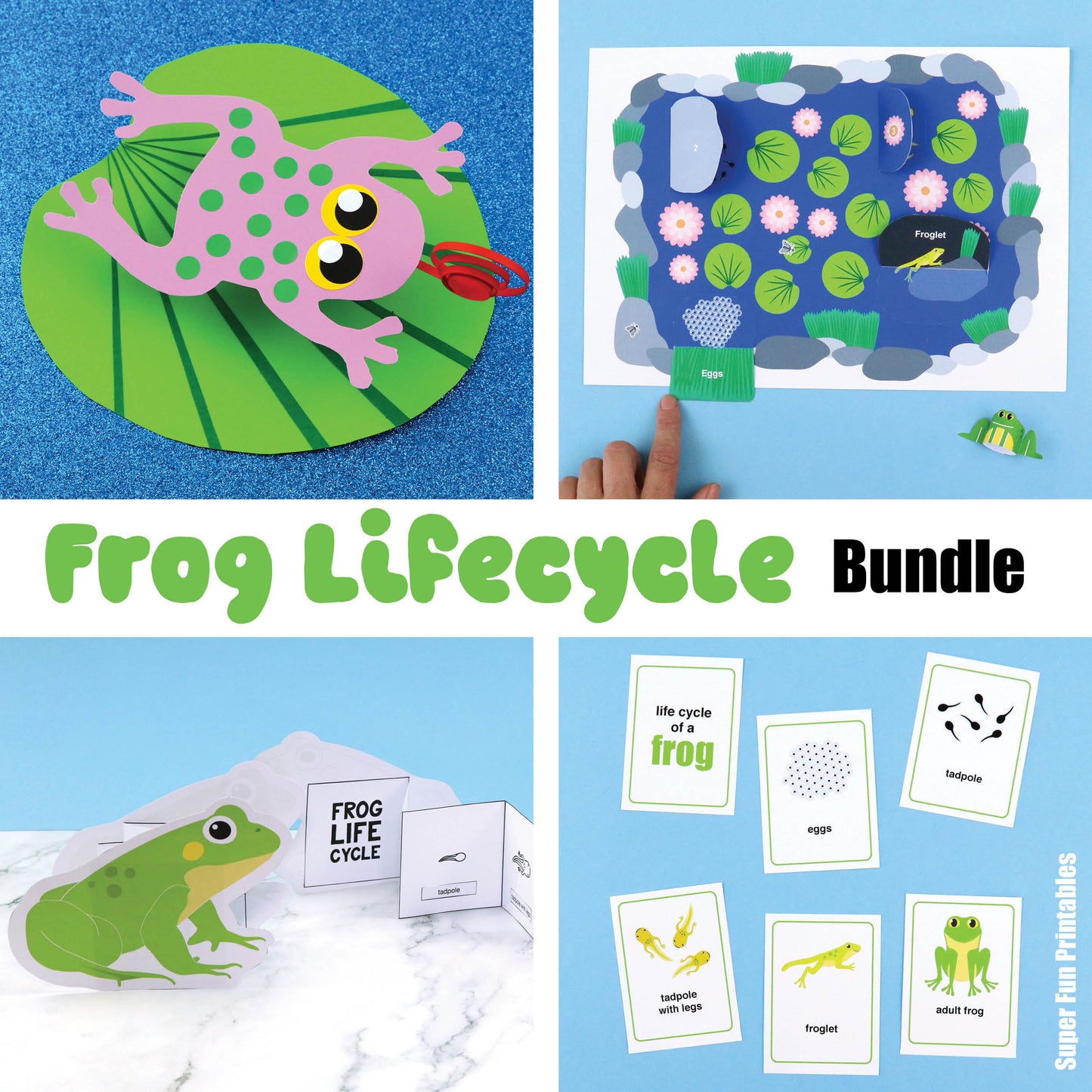 A selection of three Frog Printables, designed to help kids learn about the lifecycle of a frog in a fun and engaging way.