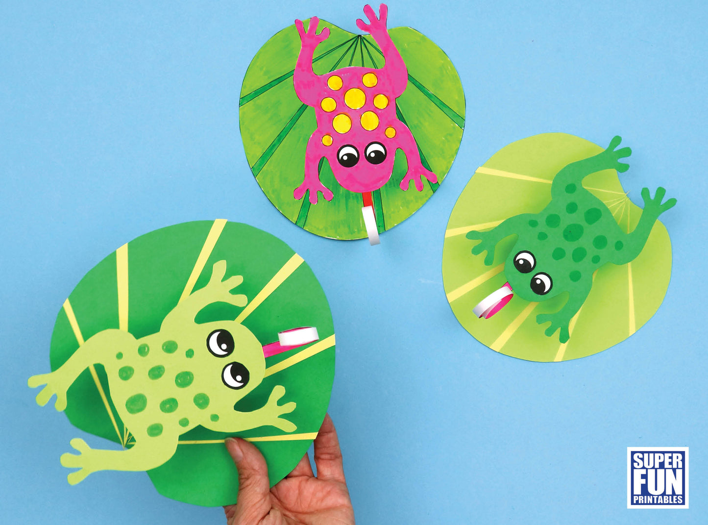 frog on a lilypad - make a frog that bounces around on his lilypad with the help of a paper spring