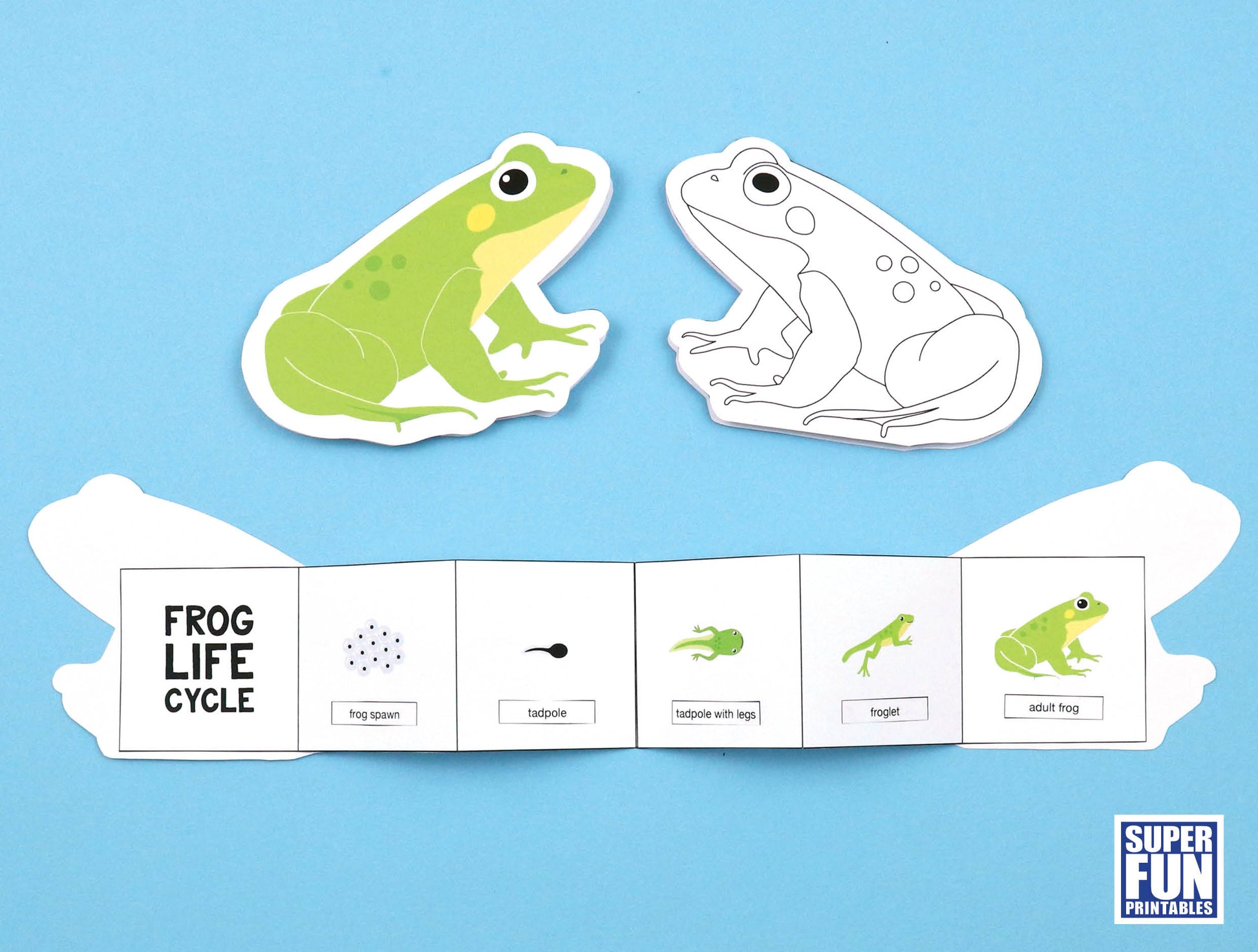 frog lifecycle booklet - make a frog-shaped folding booklet detailing the metamorphosis of egg to tadpole to frog
