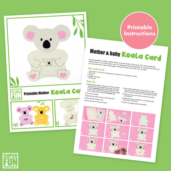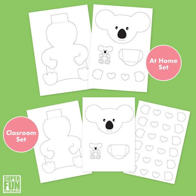 • Koala card template in both an "at home" set and "classroom set" designed for crafting with a group of kids