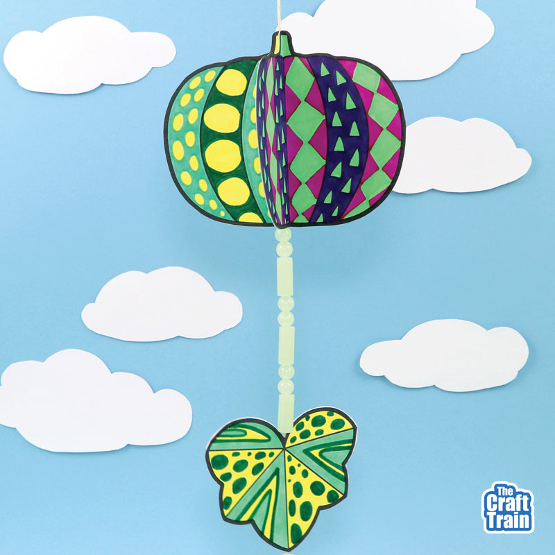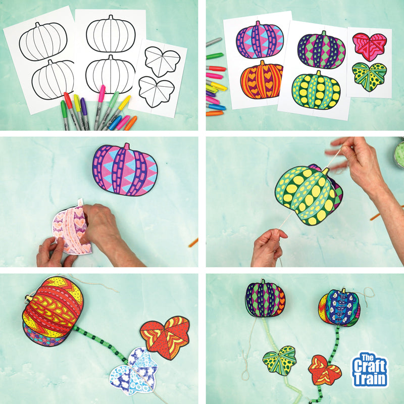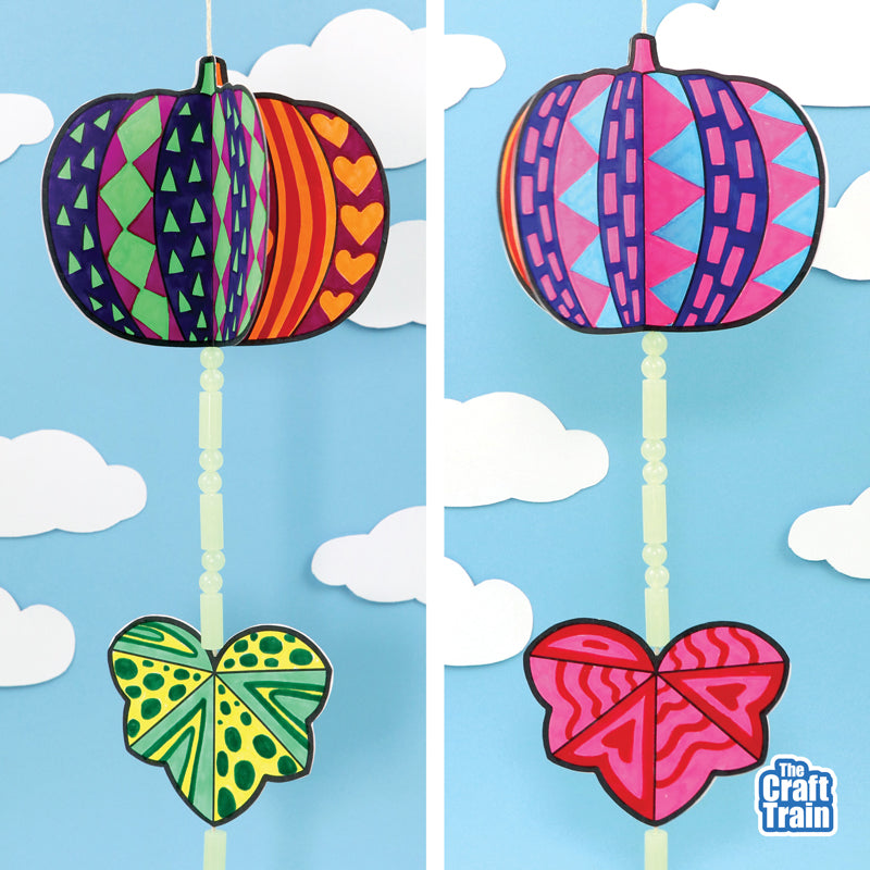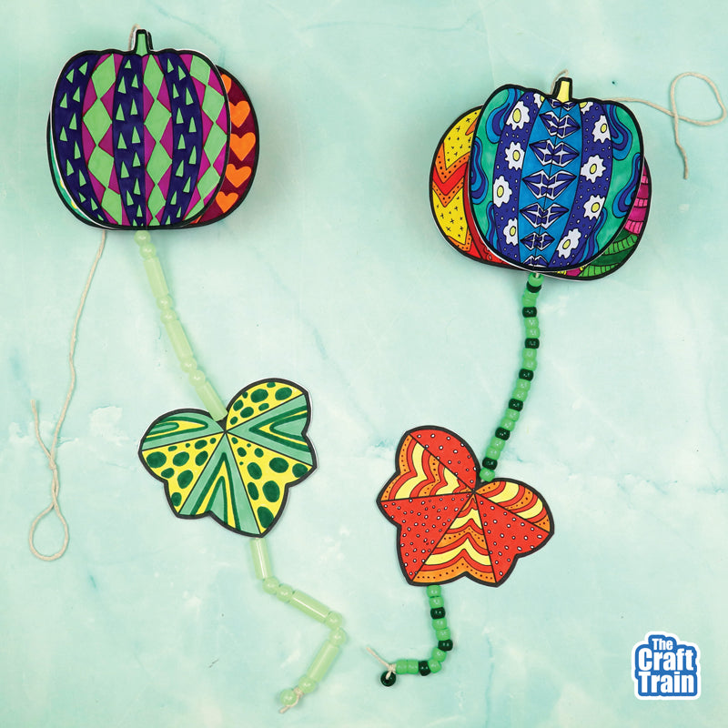 Create a gorgeous hanging pumpkin decoration using this template. When you hang your decoration in a place where it can catch the breeze, it will spin in the wind!